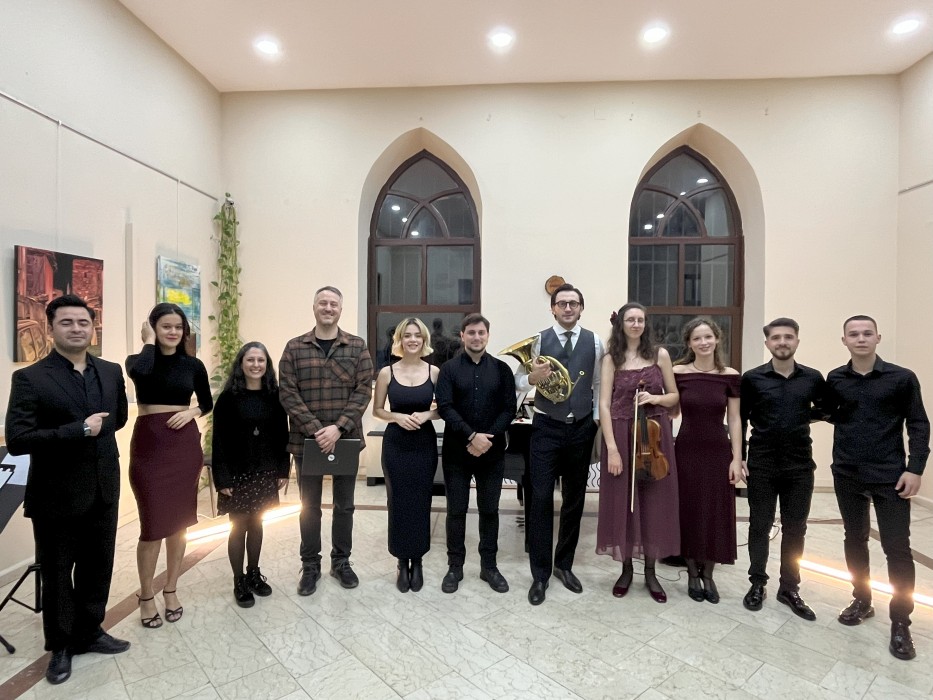 The ‘Piazzolla Concert,’ organized in collaboration with the Faculty of Music and Performing Arts and the Faculty of Fine Arts, met the audience on December 2, 2024, at the Nedime Hanım Mansion. The orchestra, performing works by Astor Piazzolla, featured Associate Professor Koray Ay from the Faculty of Music and Performing Arts on the French horn, Ada Avcı on the violin, Damla Mutlu on the piano, Seyhan Aslan and Mustafa Karaca on the guitar, and Tunahan Küçüköncü on percussion.