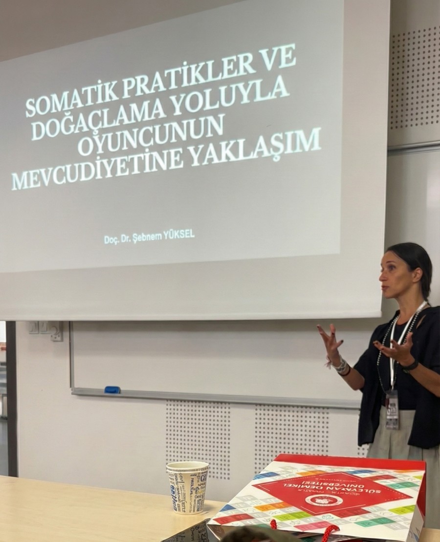 Doç. Dr. Şebnem Yüksel, 4–6 Eylül 2025 tarihleri arasında Isparta Süleyman Demirel Üniversitesinin ev sahipliğinde düzenlenen 3. UTAD Konferansı’nda 'Somatik Pratikler ve Doğaçlama Yoluyla Oyuncunun Mevcudiyetine Yaklaşım' başlıklı bildirisini sundu.